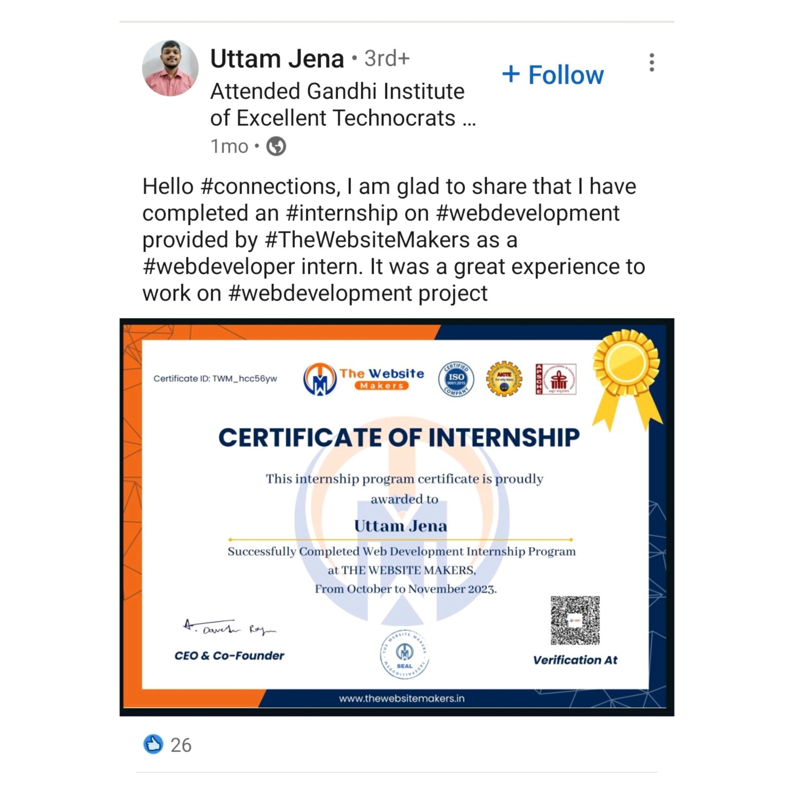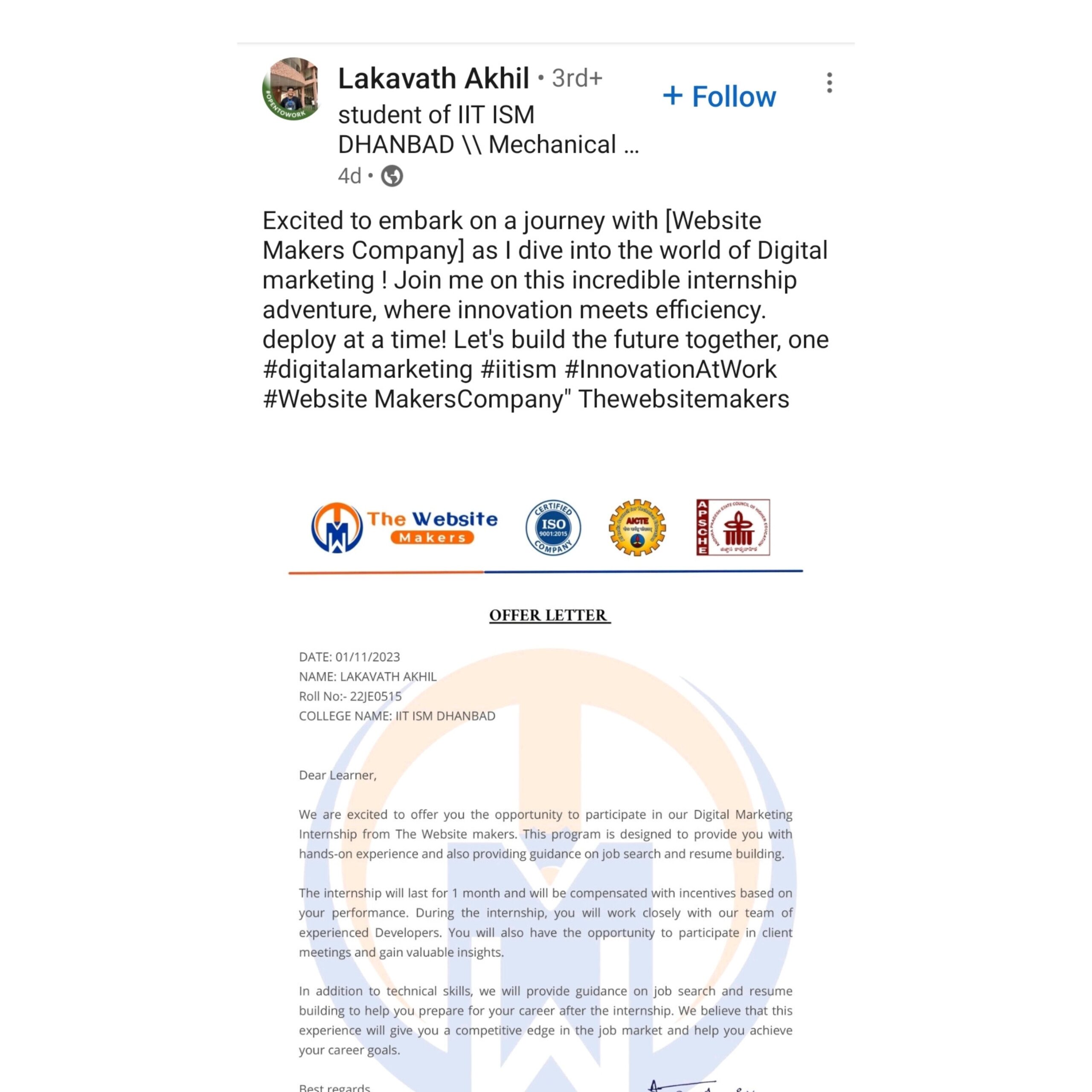 Get our industry-recognised Internship Certificate and showcase it in your resume and linked profiles to get more chances to get the Job.